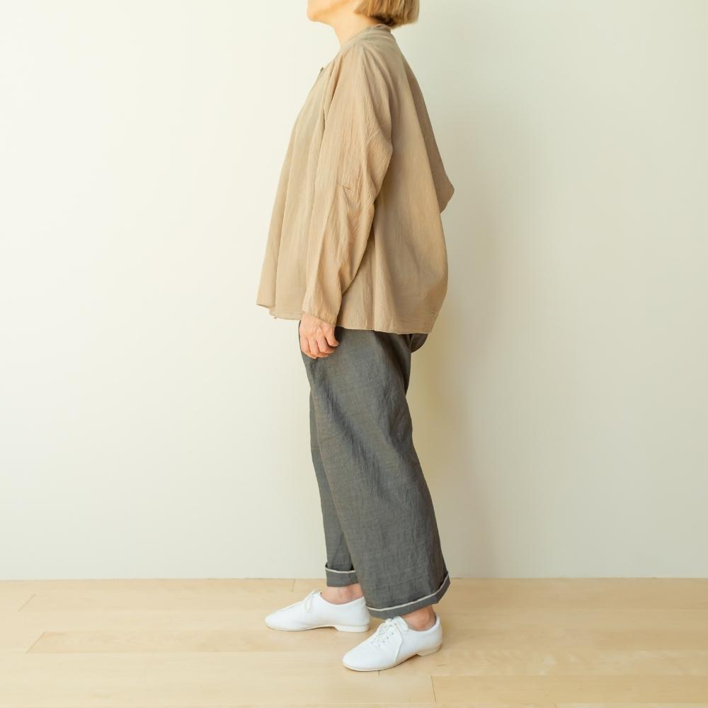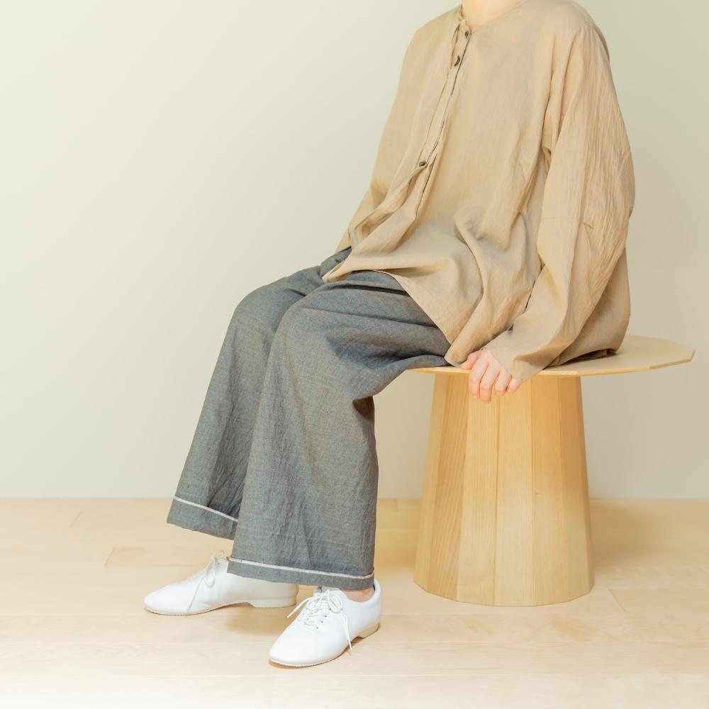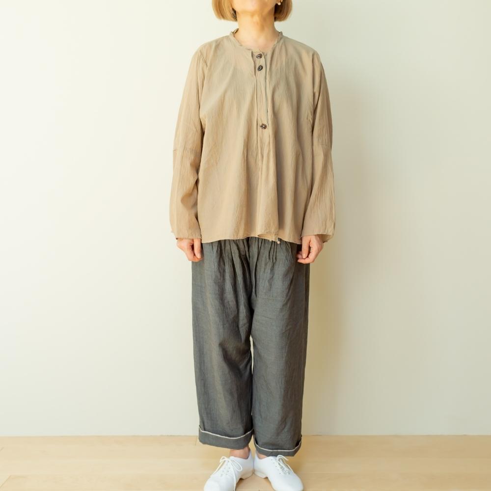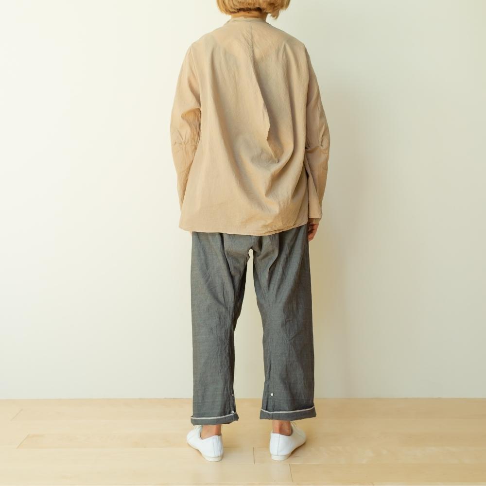インドに昔から伝わる技法で創られるカディは、吸収性・速乾性にすぐれ、夏は肌に涼しく、冬は暖かく感じられるとても気持ちいい素材です。生糸を紡ぎ、巻き取り、織る・・・と多くを手作業で行います。そのため長い時間を必要とし、生地1Mの糸を紡ぐだけで1日もかかるほどです。手で引くカディの糸は機械では出しえないほどとても細く繊細です。こうして多くの人の手を経て、カディはとても温かみがあり味のある素材として生まれます。