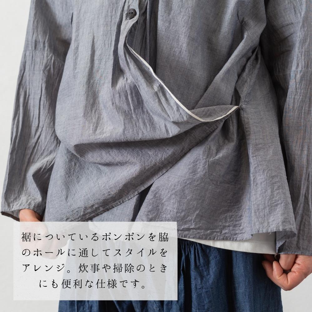 裾についているポンポンを脇のホールに通してデザインをアレンジ。