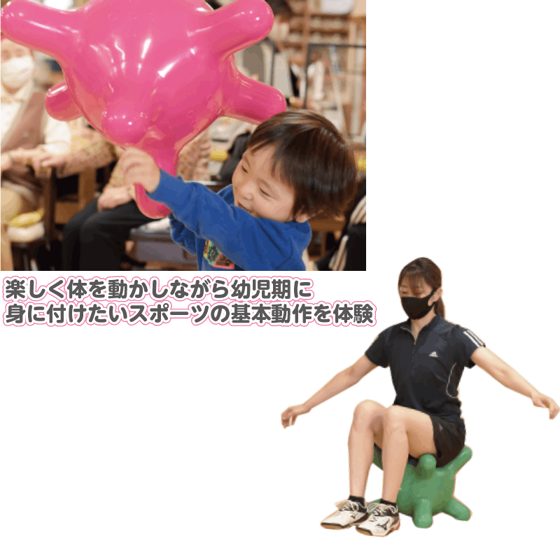 - 楽しく体を動かしながら幼児期に身に付けたいスポーツの基本動作を体験